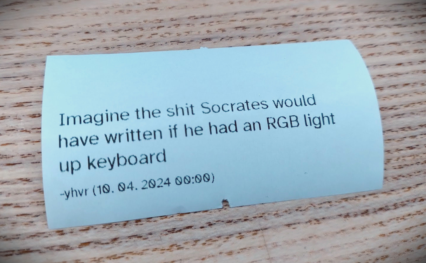 I have TWO (2) thermal receipt printers, and one of them is on my desk. What if I made it print the winning post every 10 minutes? So that’s exactly what I did.